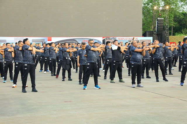 Dalam rangka menjaga kebugaran serta meningkatkan semangat sebelum pelaksanaan pemberian materi pada Apel Kasatwil Polri 2025, di Markas Brimob, Kab Bogor, Jawa Barat, Selasa, (25/11).